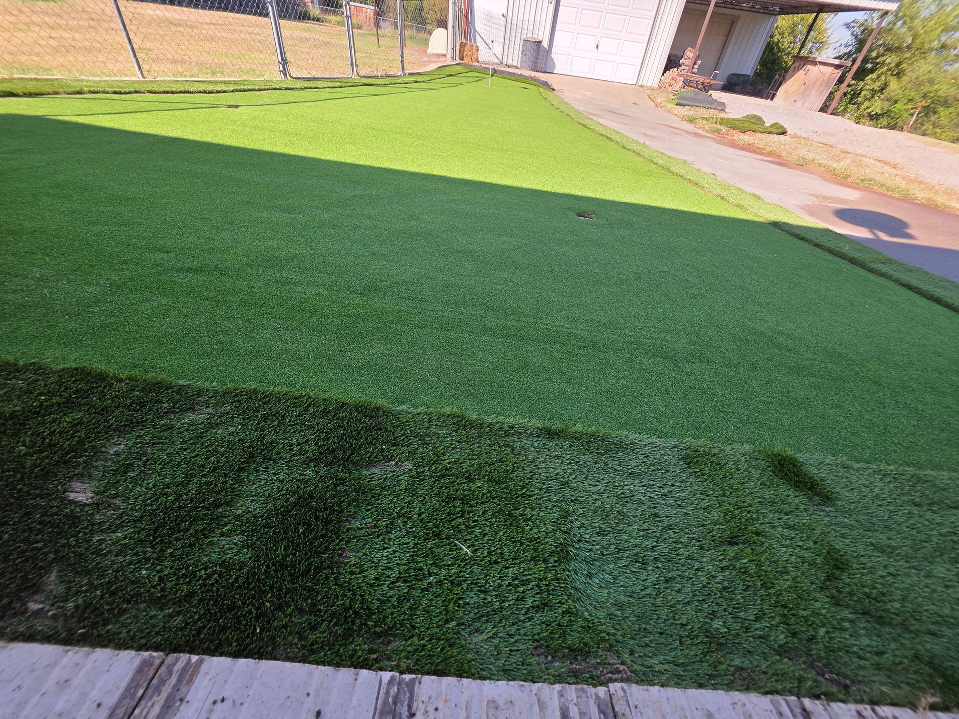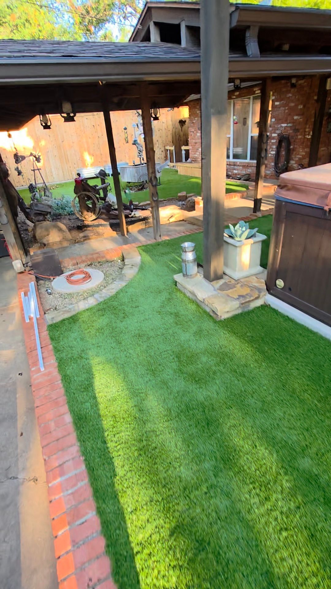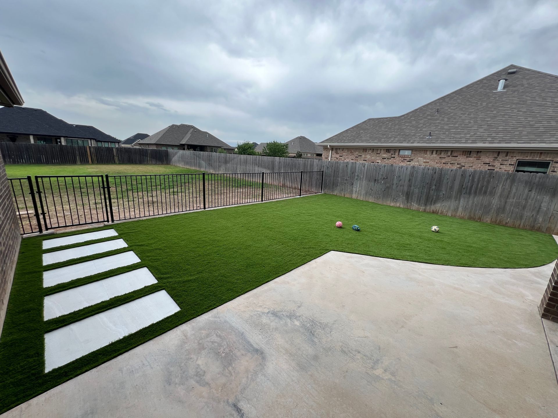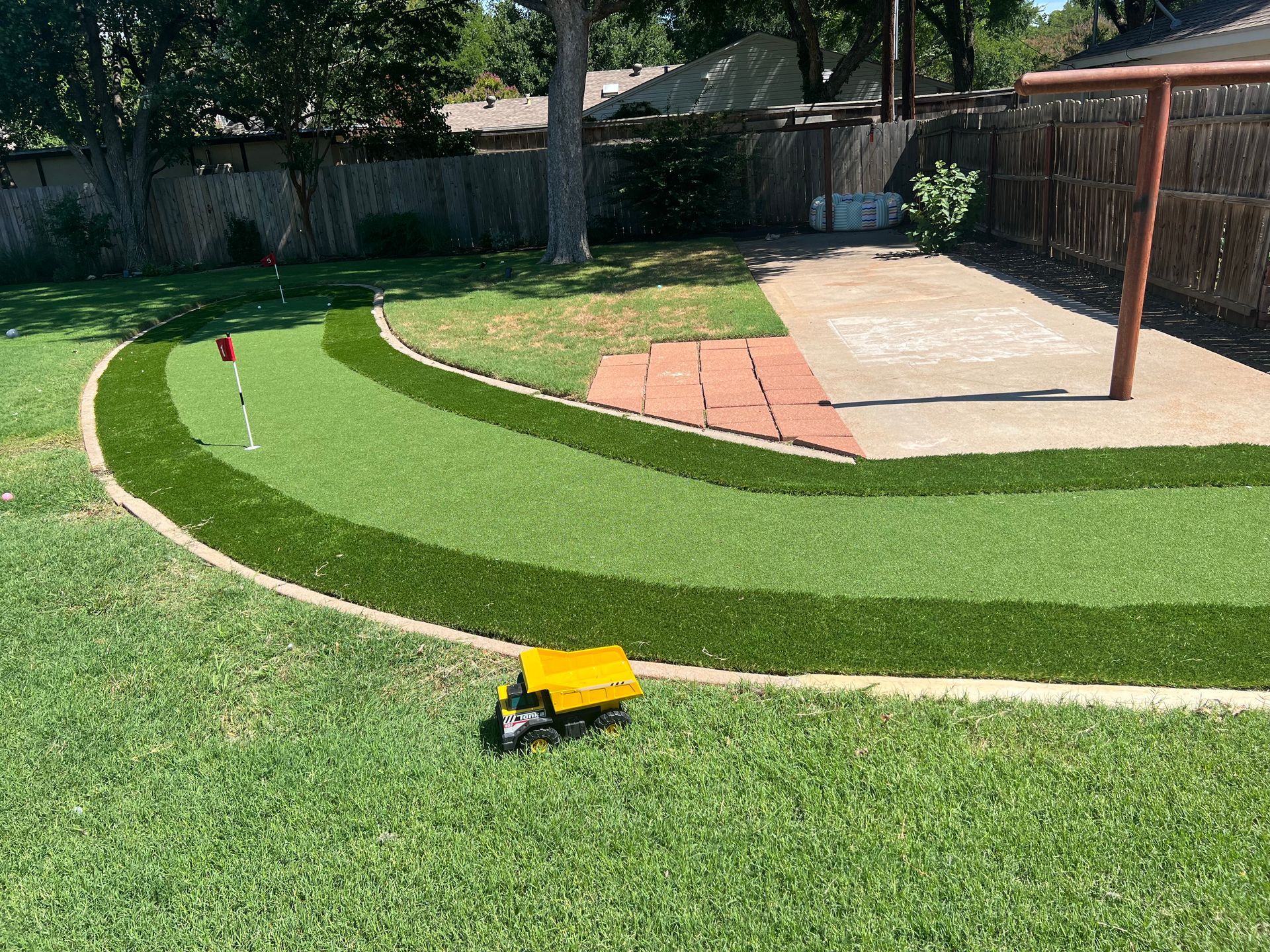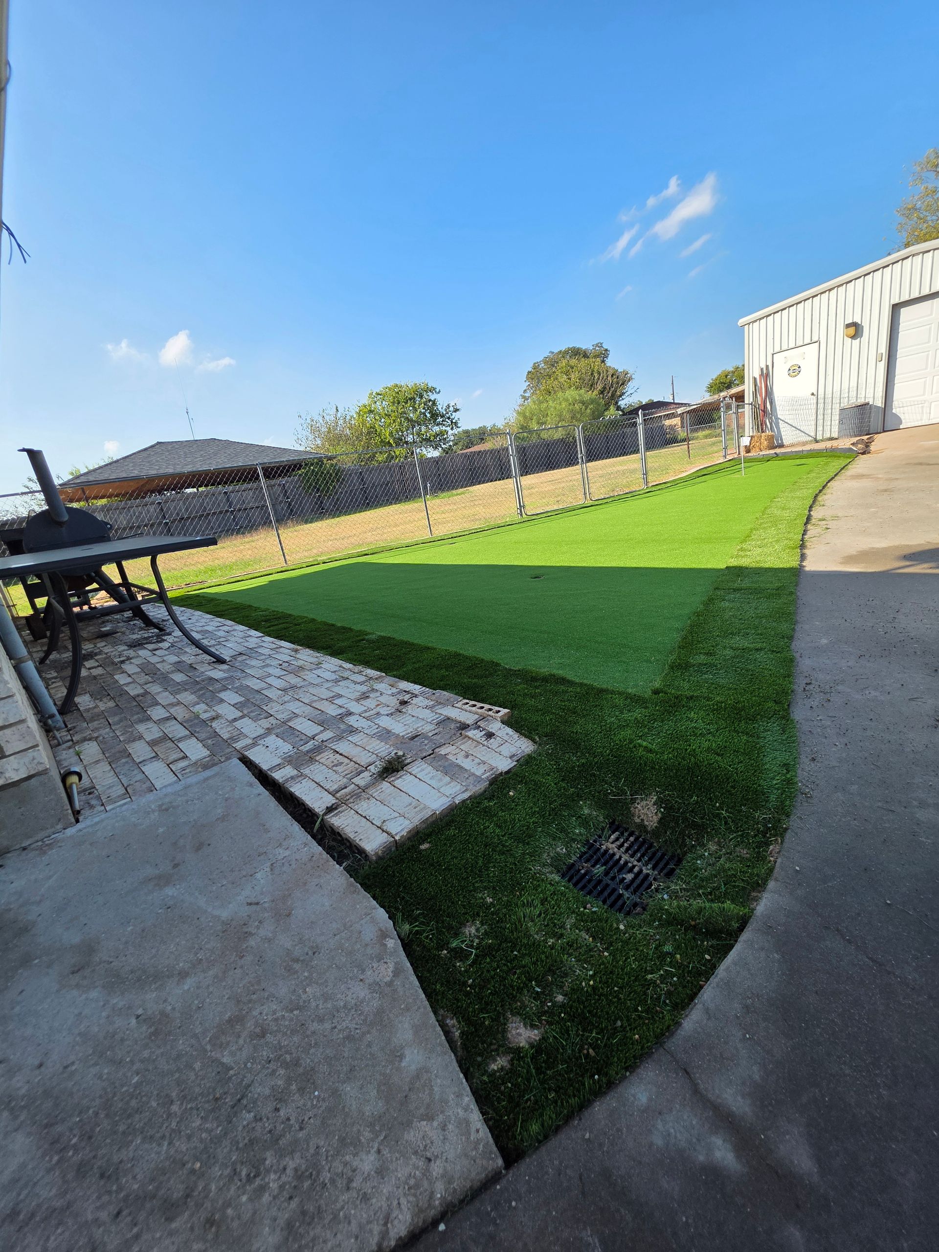 ForeverLawn Before and After Photos of a Backyard without and with a synthetic lawn.
