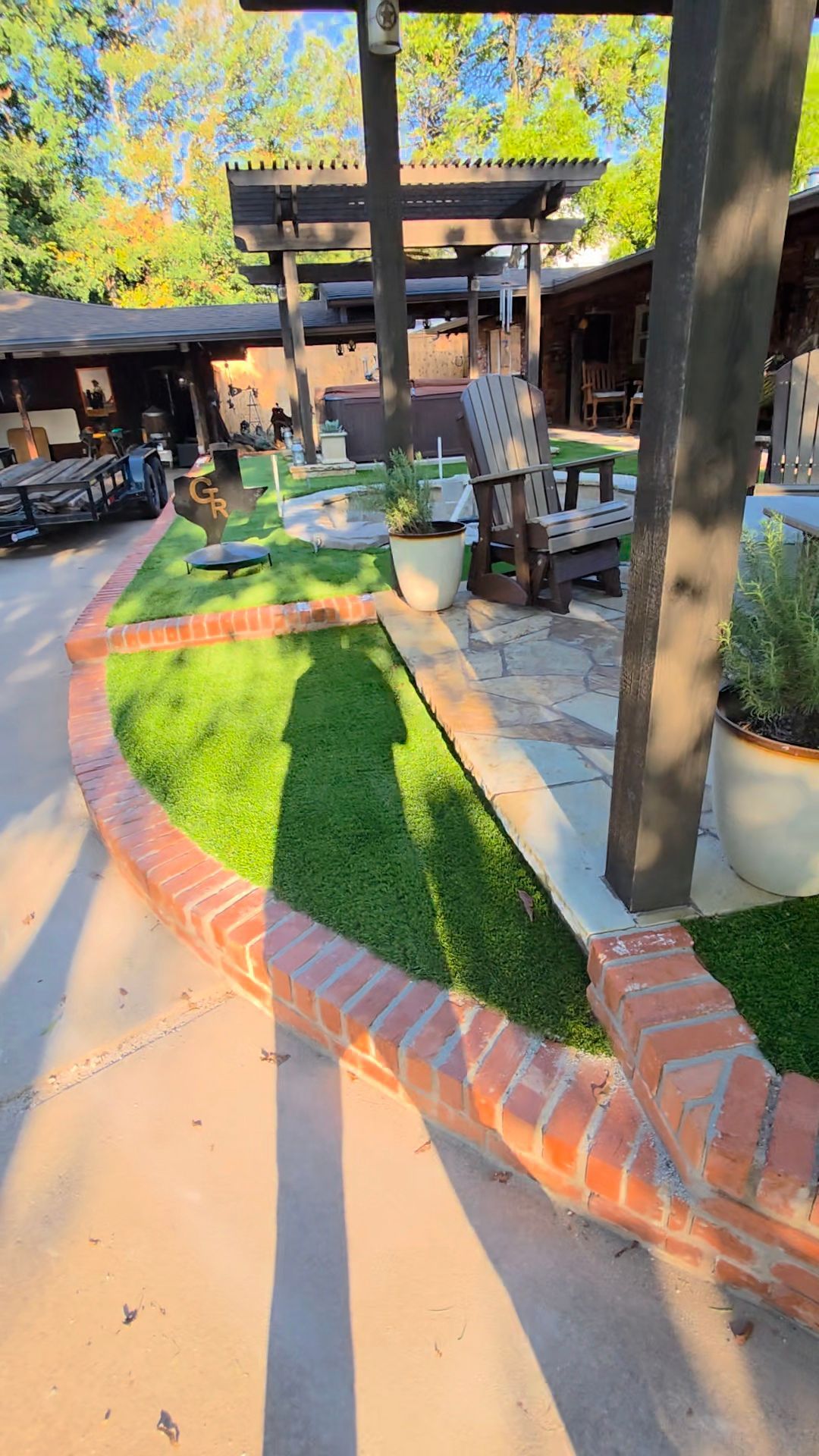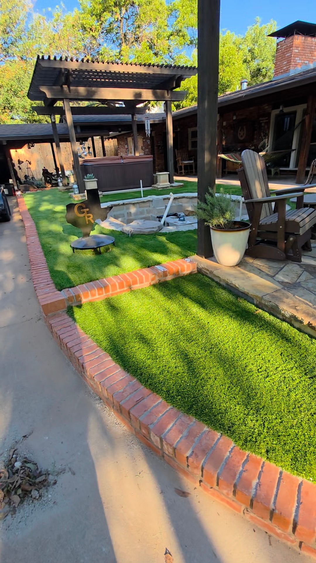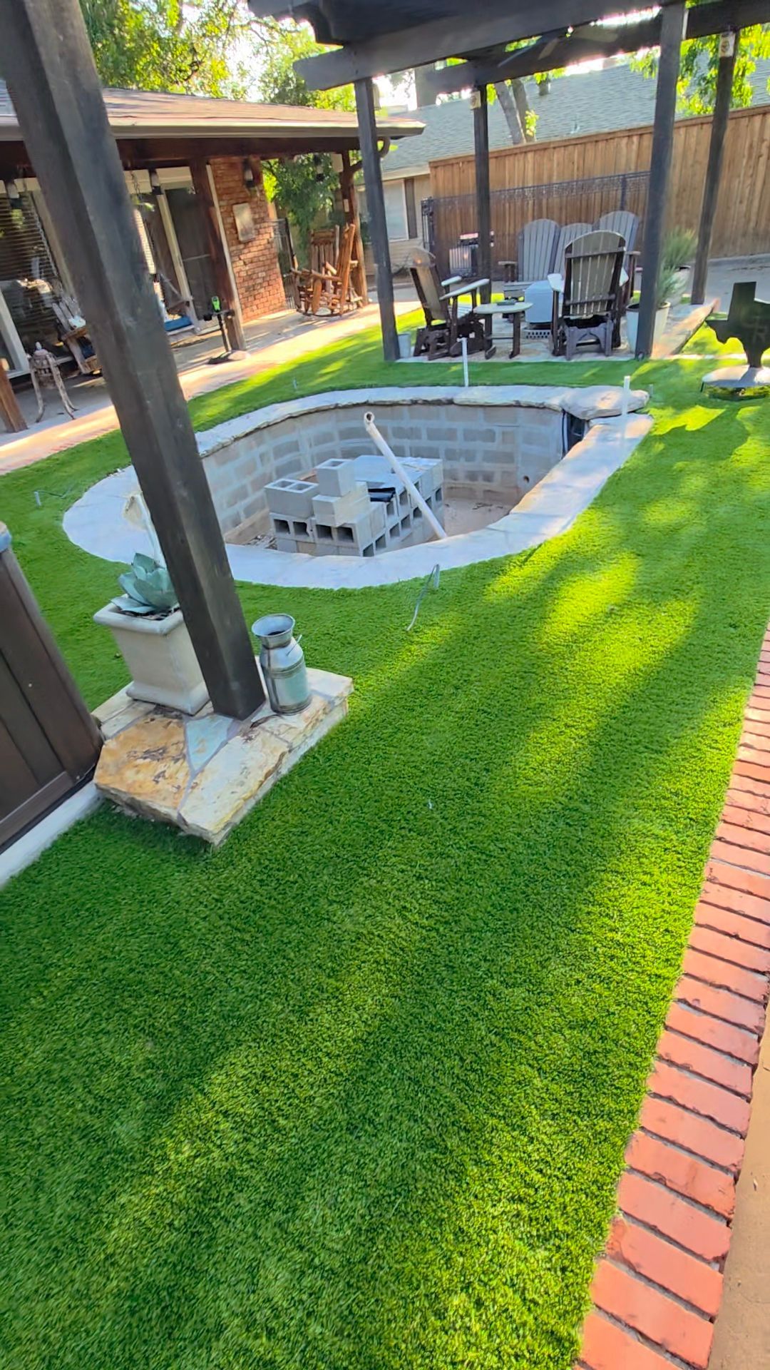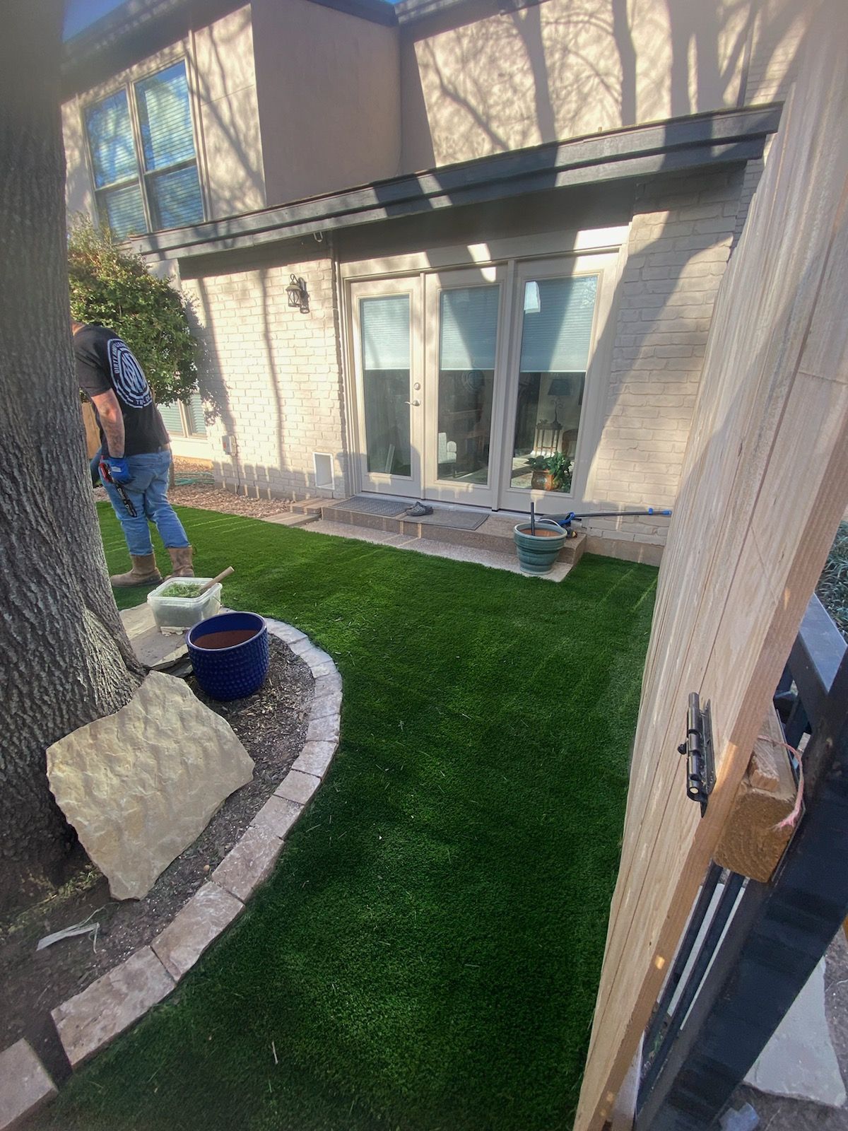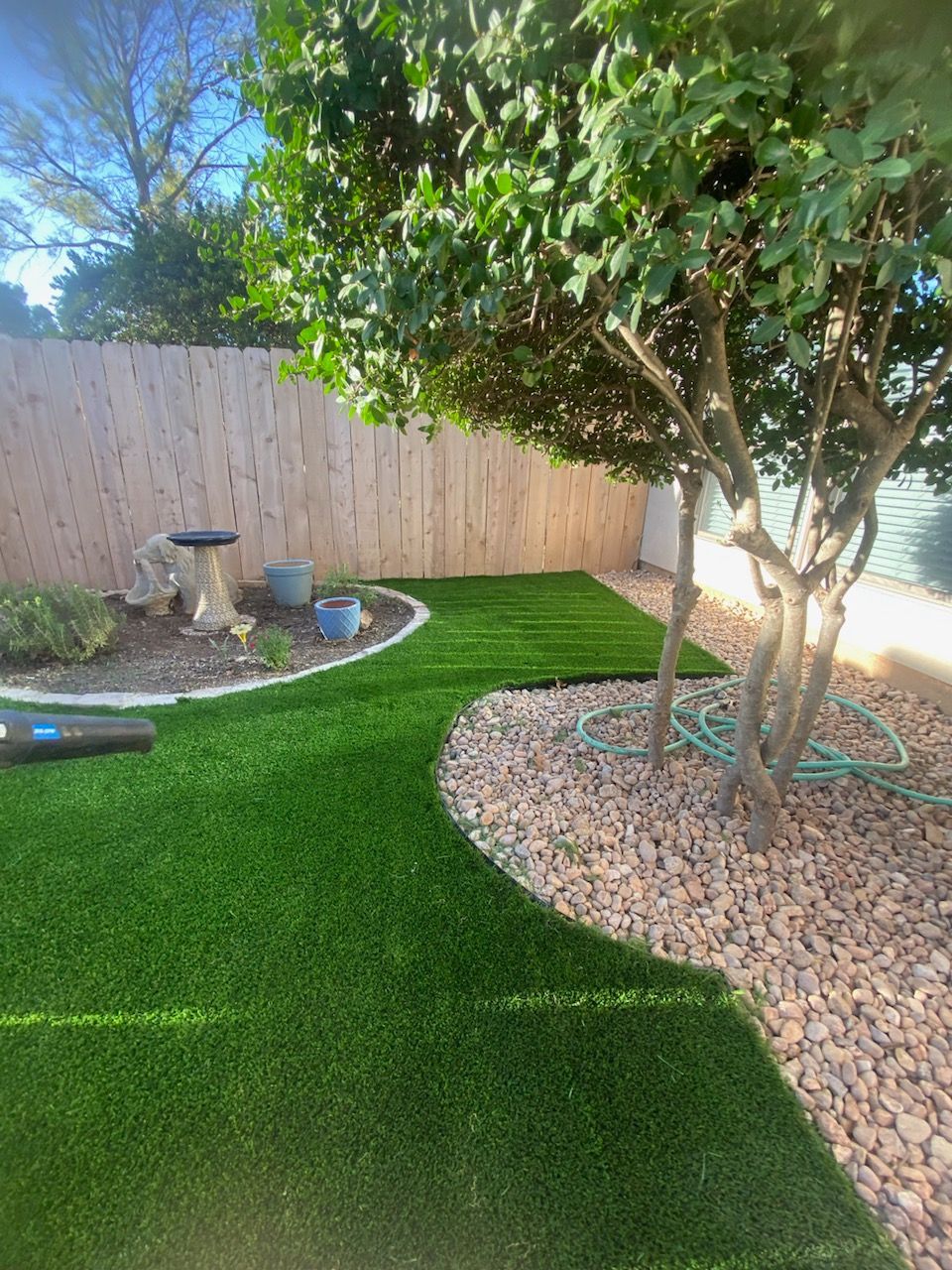 ForeverLawn Before and After Photos of a Backyard without and with a synthetic lawn.